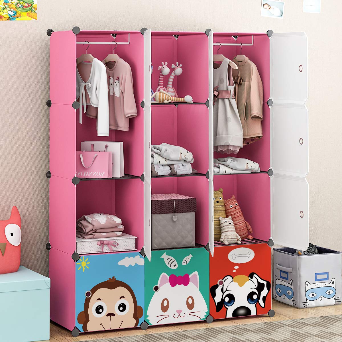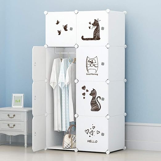 Maginels wardrobe clothes closet bedroom armoire dresser cube storage organizer portable 30% deeper cube white sticker 10 cube & 2 hanging sections.