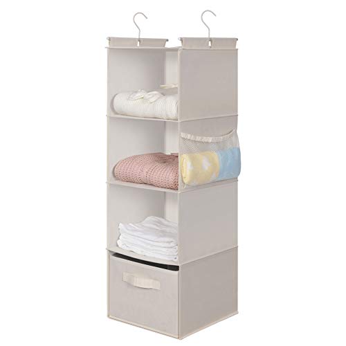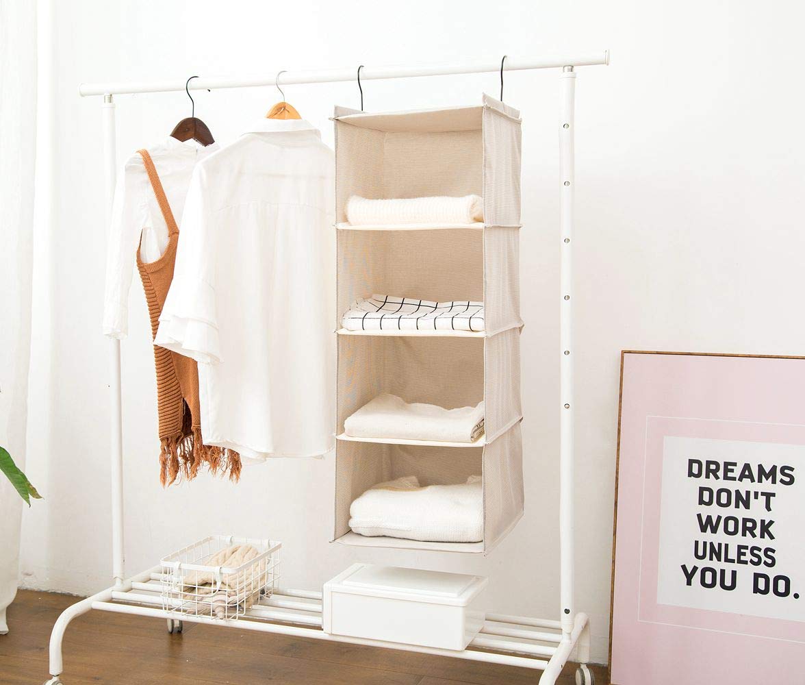 Buy aoolife closet hanging shelves organizer, linen cloth,light and breathable collapsible hanging closet organizer for sock, clothes, bra, toys and more (3 shelf +1 drawer):