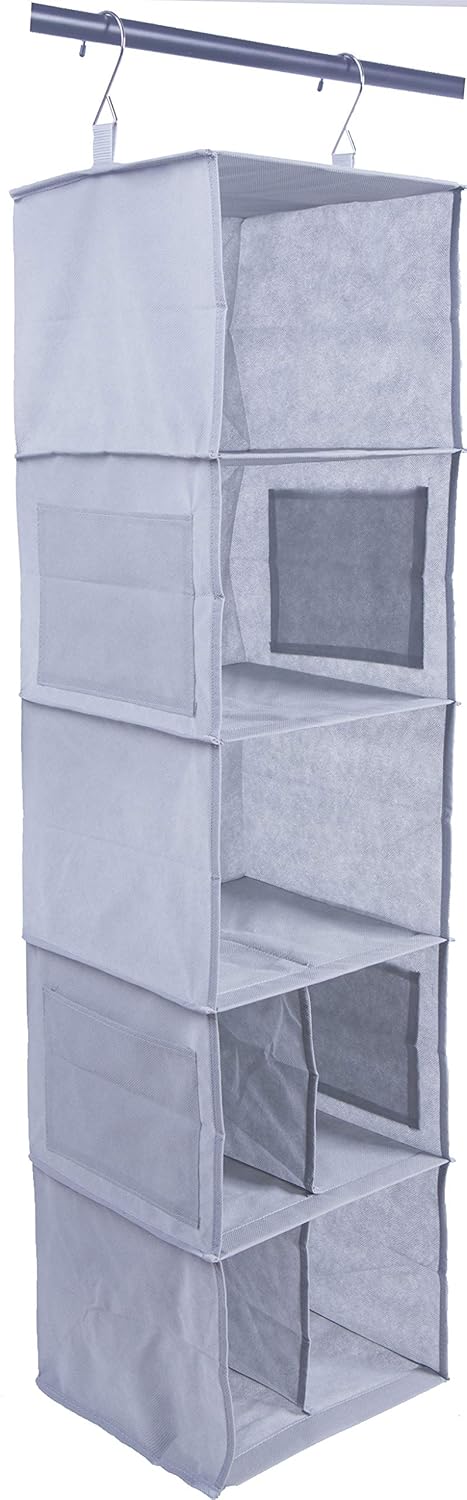 View 4 Shelf Hanging Closet Organizer Gif. Each shelf has a window for. Crafted from durable 600 denier polyester, our deluxe organizer incorporates a collapsible front flap that will be sure to eliminate clothes avalanches. To fit a variety of closet sizes; You could simply fold it up when you don't. Hanging shelves or hanging closet organizers are an easy, affordable way to add additional storage to a cramped space.